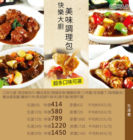 快樂大廚美味調理包 6包起 - 146041是最近關注的一項還算不錯的商品,一樣是在Gomaji上發現的。我真的非常喜歡逛Gomaji,尤其很多東西價格都很不錯,也有不少優惠券可以用,下面是賣場提供的商品簡介: